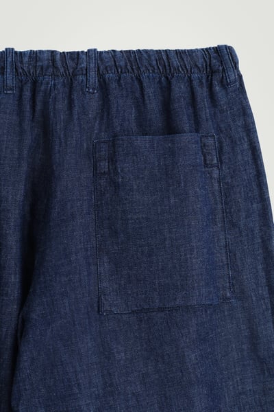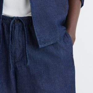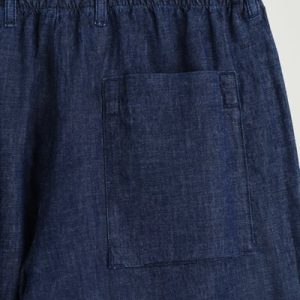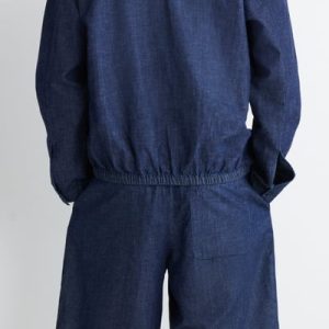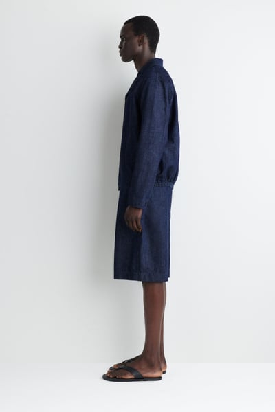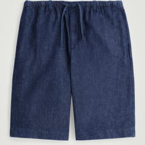 Reimagining denim through a summer lens, these laid-back shorts are crafted from lightweight organic cotton with hints of linen for breathability. They come in a rich gray-blue tone that recalls the ocean and are cut in a relaxed shape with an elasticized drawstring waistband. Style it with thematching overshirt.
