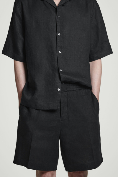 These modern shorts fuse the formality of tailoring with the ease of linen. Made from breathable European Flax™, they’re designed with an elasticated waist and internal drawstring for a comfortable fit, with a tailored closure that keeps the look smart. They’re finished with side pockets and a welt pocket at the back.