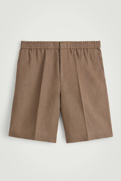These modern shorts fuse the formality of tailoring with the ease of linen. Made from breathable European Flax™, they’re designed with an elastic waistband and internal drawstring for a comfortable fit, with a tailored closure that keeps the look smart. They’re finished with side pockets and a welt pocket at the back.