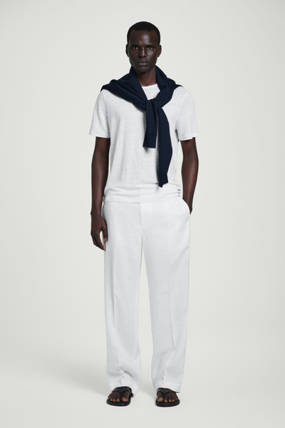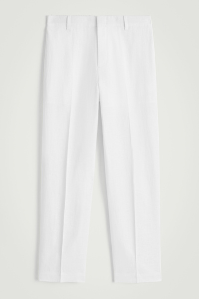 Laid back yet refined, these straight-leg pants are made from naturally lightweight linen and have a flexible elasticated waistband, side slip pockets and pressed creases. Style them with a shirt or tee.