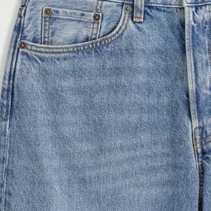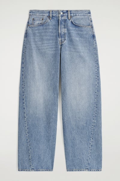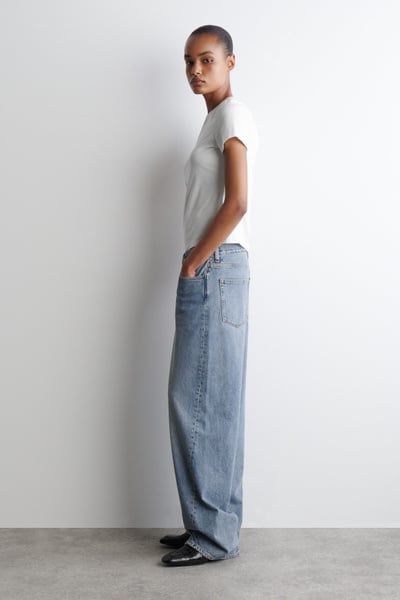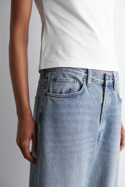 Rooted in ’00s nostalgia, the Facade jeans are shaped with a low rise that’s synonymous with the early aughts. They’re crafted from organic- and recycled cotton-blend denim and dyed a lived-in blue wash. The straight legs have wrap-around seams for a deconstructed effect, while the light whiskering and distressing give them character.
