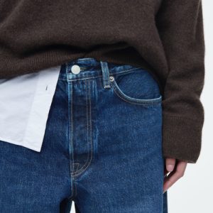 Rooted in ’00s nostalgia, the Facade jeans are shaped with a low rise that’s synonymous with the early aughts. They’re crafted from organic- and recycled cotton-blend denim and dyed a deep-blue wash. The straight legs have wrap-around seams for a deconstructed effect, while the light whiskering and distressing give them character.