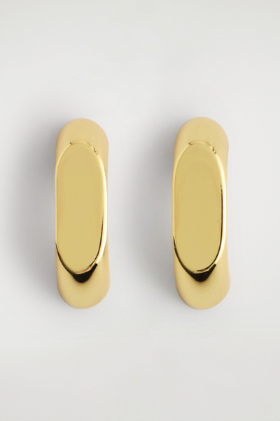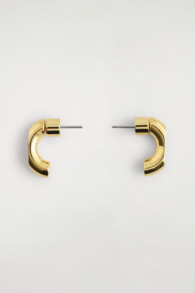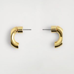 Understated yet impactful, these modern semi-hoop earrings will accent the daily wardrobe. They’re crafted from gold-plated recycled brass and have a curved silhouette with faceted edges.