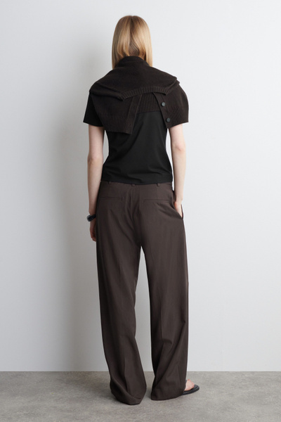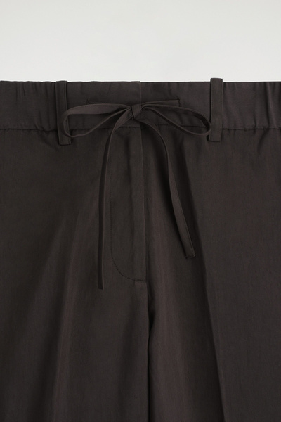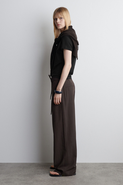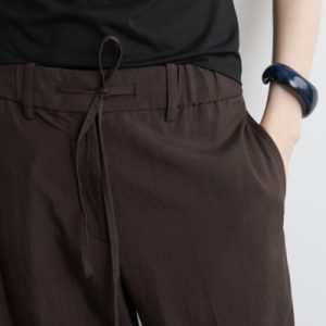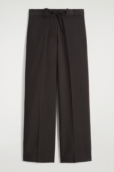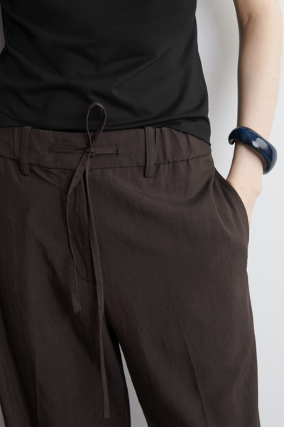 Channeling an effortless appeal, these straight-leg pants are made from a fluid, lightweight fabric and finished with drawstrings at the waist. They come in a chocolate tone that will be easy to style with the rest of your wardrobe.