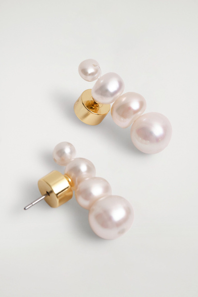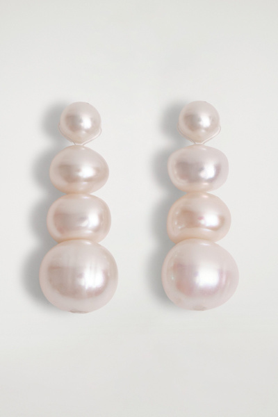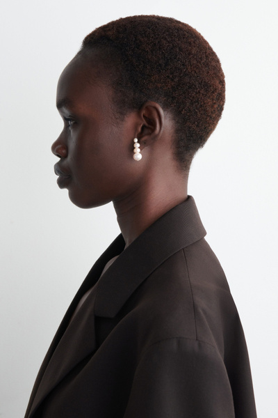 Striking in their simplicity, these stud earrings are designed with baroque freshwater pearls that look as though they’re cascading from the lobe. They’re finished with gold-plated closures, each engraved with the signature COS motif.