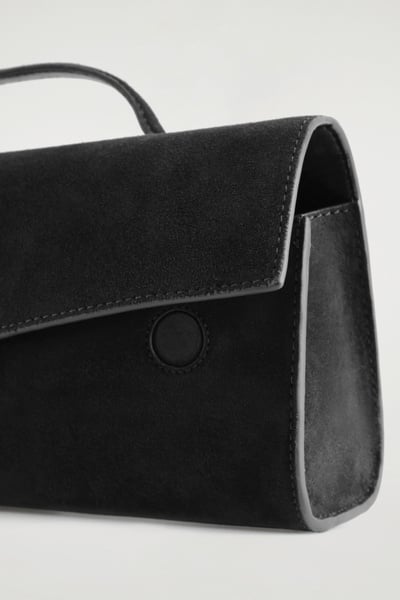 This season, the COS accessories designers channel a ’90s sensibility through a modern lens. Crafted from softly brushed suede, the Gallery clutch has a refined east-west silhouette and features an enveloped flap with discreet magnetic closures. It’s finished with a tonal top handle so it can be carried in hand.