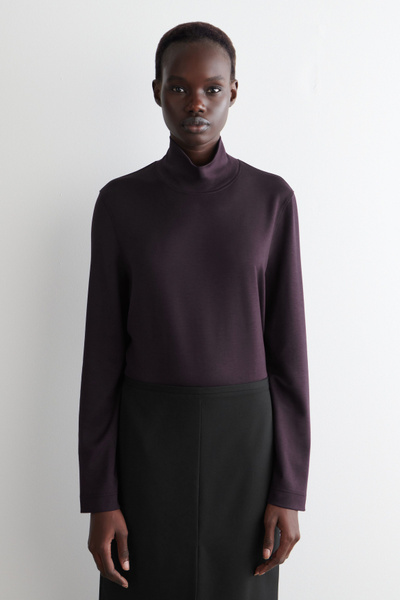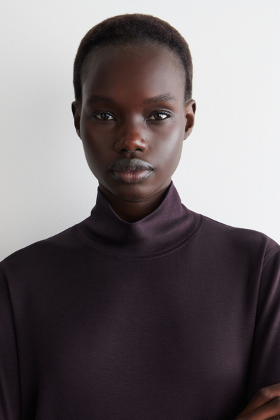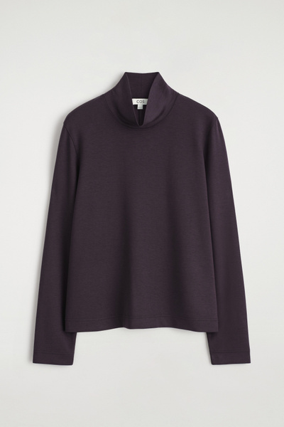 Considered staples are a cornerstone of the COS wardrobe. This refined top is made from our softest modal-blend jersey and cut in a boxy silhouette with a high neckline and elongated sleeves for an effortless look.