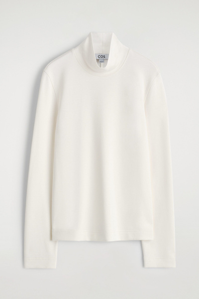 Considered staples are a cornerstone of the COS wardrobe. This refined top is made from our softest modal-blend jersey and cut in a boxy silhouette with a high neckline and elongated sleeves for an effortless look.