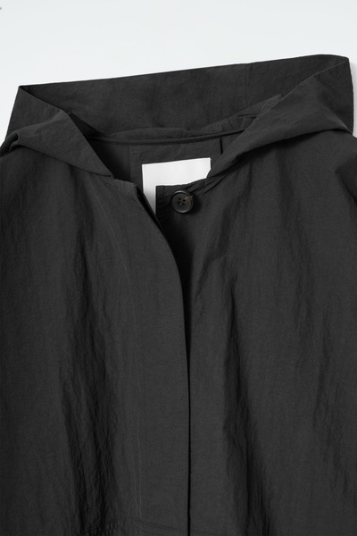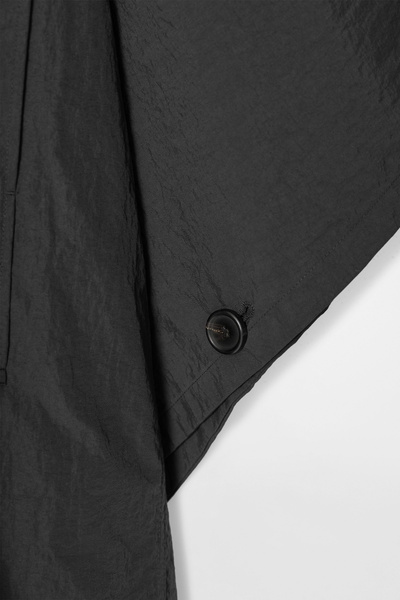 This modern piece combines the classic elements of the trench coat and cape. Effortless to style, it’s crafted from recycled nylon that has an ultra light handle and features a hood and discreet pockets at the front. The buttoned sleeves and back box pleat create a breezy silhouette that’s perfect for layering.