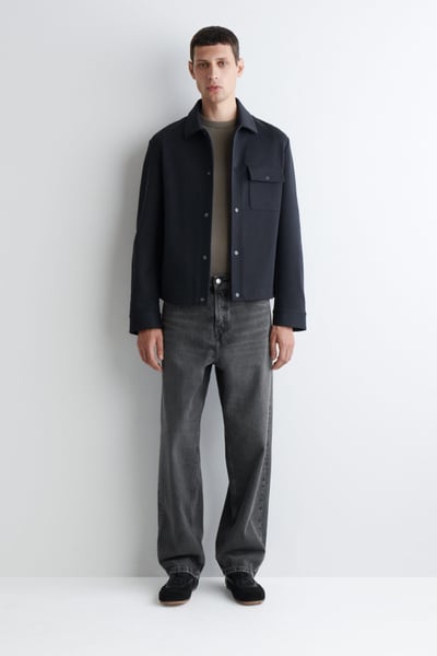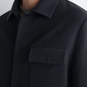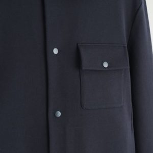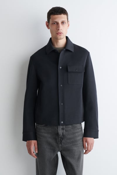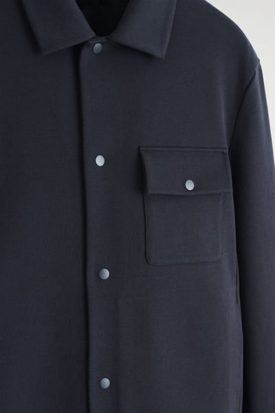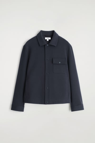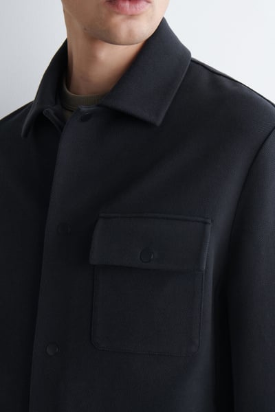 Timeless in design, this navy shirt jacket is made from soft cotton-blend jersey in a twill weave. It features a pointed collar, chest patch pocket and silver-tone snap buttons for a modern touch. Style it over knitwear and tees.