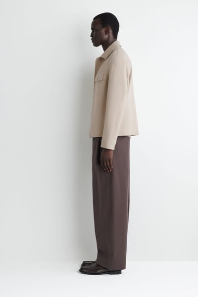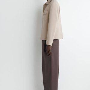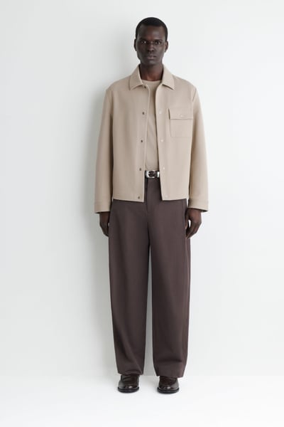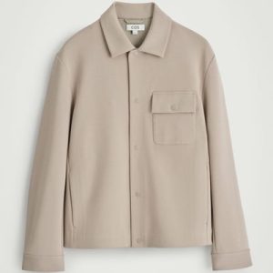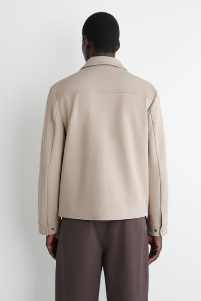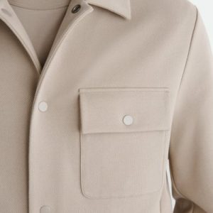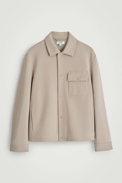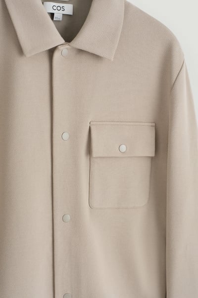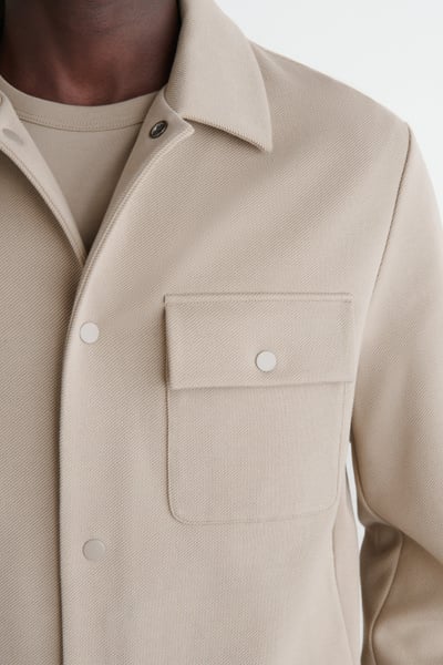 Timeless in design, this shirt jacket is made from soft cotton-blend jersey in a twill weave. It features a pointed collar, chest patch pocket, and silver-tone snap buttons for a modern touch. Style it over knitwear and tees.