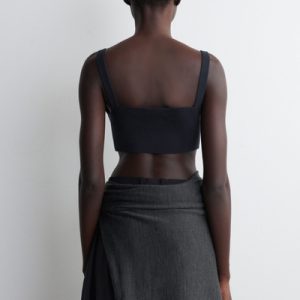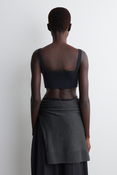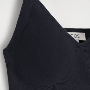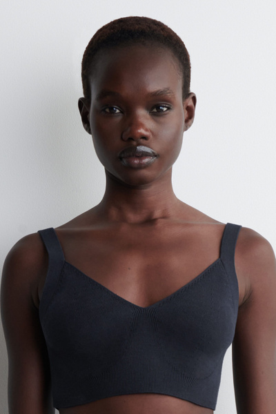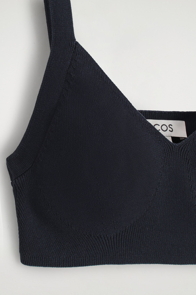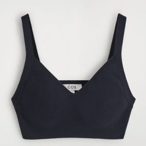 This sculptural bralette fuses refined craftsmanship with modern minimalism. Knitted from soft cotton, it’s offered in a rich navy tone that’s effortless to style and designed with a V-neckline and contoured cups.