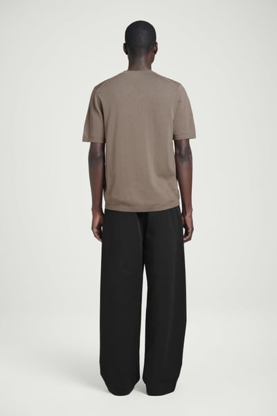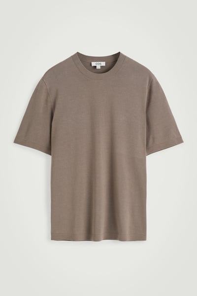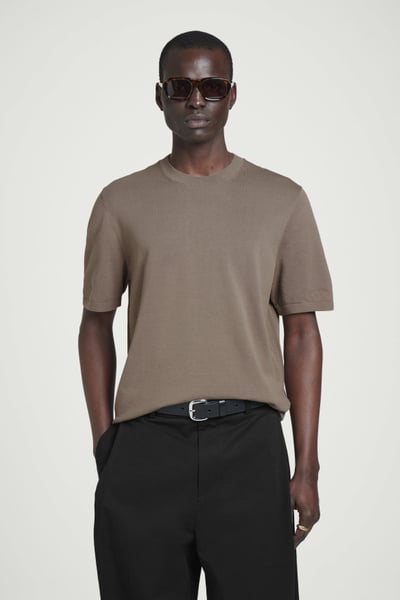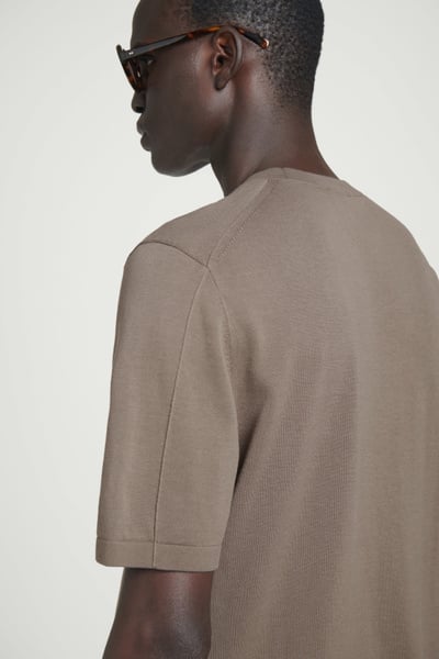 Premium fabrics and purposeful design are central to the COS menswear collection. This refined T-shirt is expertly knitted from lightweight cotton in a dark mole hue and designed with Milano-knit seams that lend subtle structure.