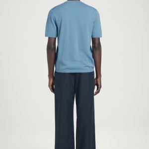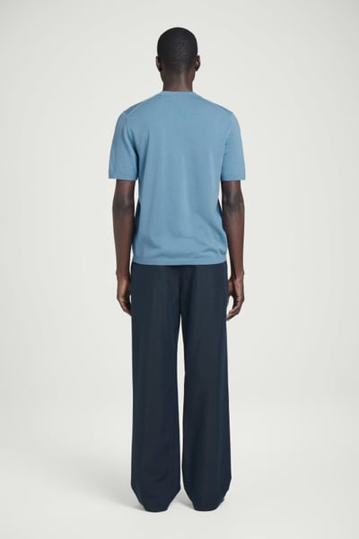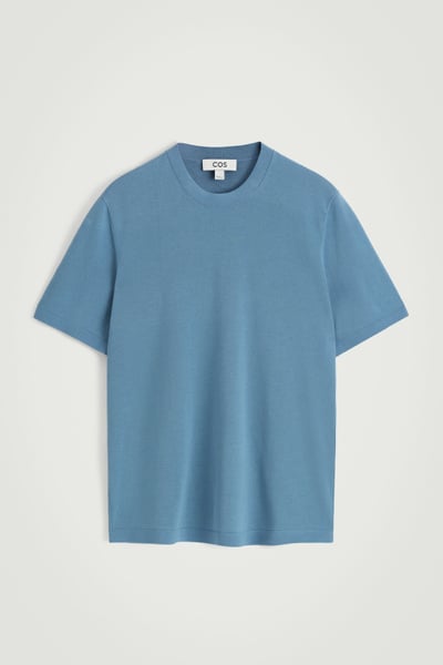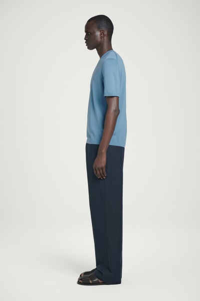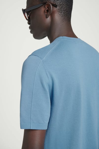 Premium fabrics and purposeful design are central to the COS menswear collection. This refined T-shirt is expertly knitted from lightweight cotton in a steel-blue hue and designed with Milano-knit seams that lend subtle structure.