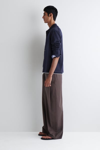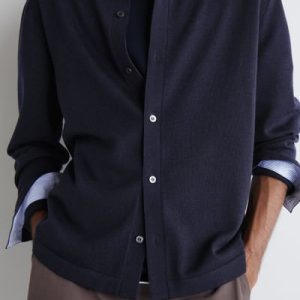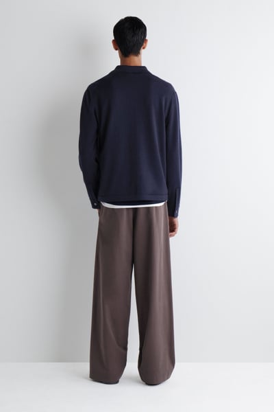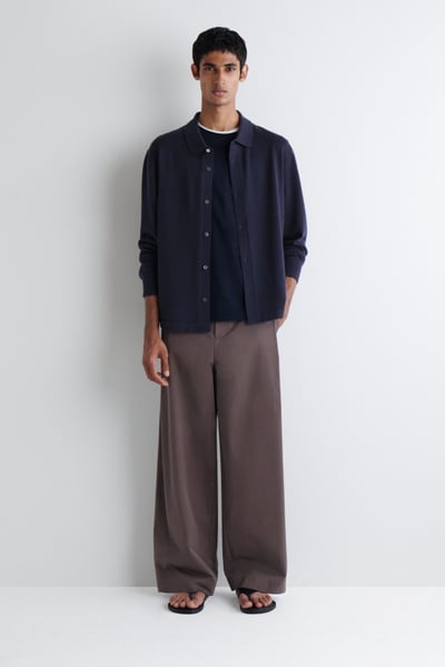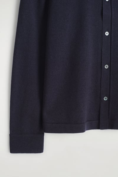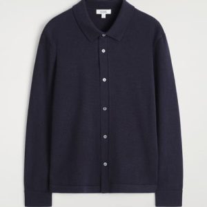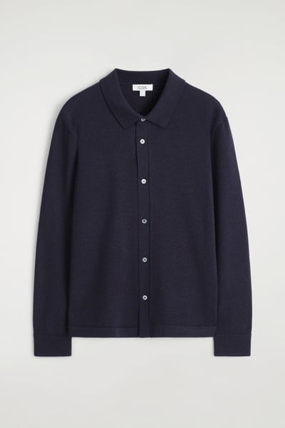 This piece combines the rich tactility of knitwear with the classic appeal of a shirt. Rendered in an enduring midnight tone, it’s knitted from premium merino wool that promises a light handle and unparalleled softness. It’s finished with mother-of-pearl buttons and striped cuff plackets – a detail that’s revealed when the sleeves are rolled.
