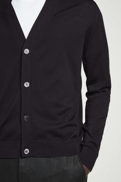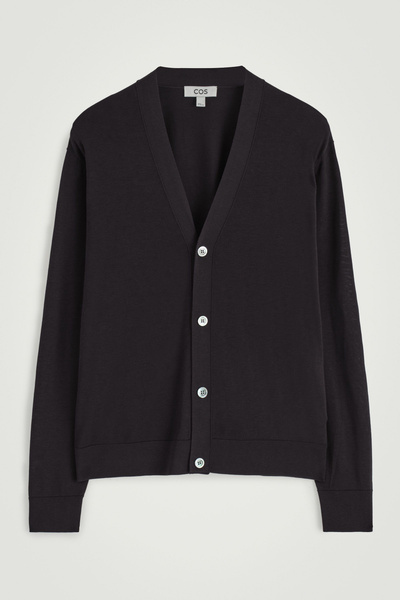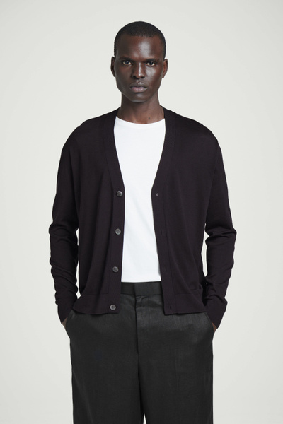 Knitted from a premium recycled mulberry-silk blend, this V-neck cardigan embodies the COS ethos of creating perfected staples. The simple shape and refined espresso tone encourage thoughtful styling – layer it over a tank top for a classic look.