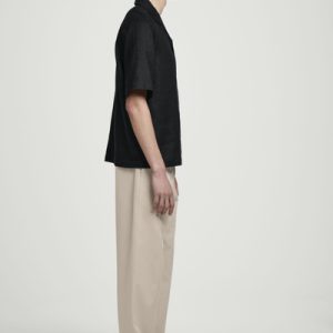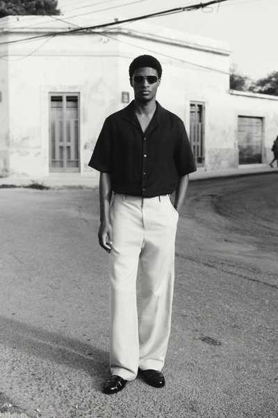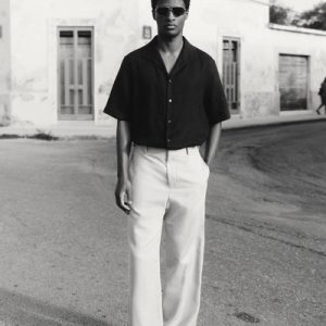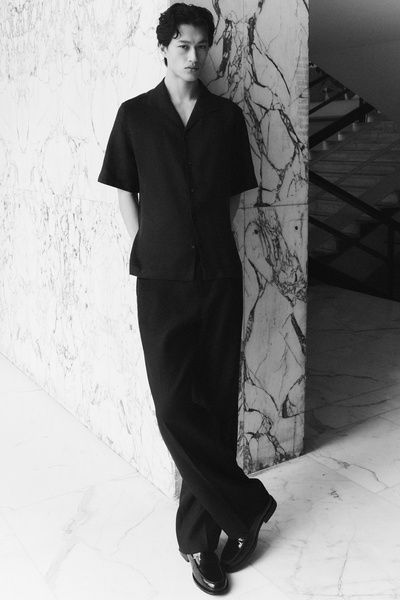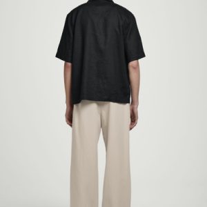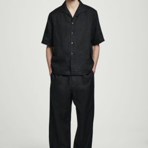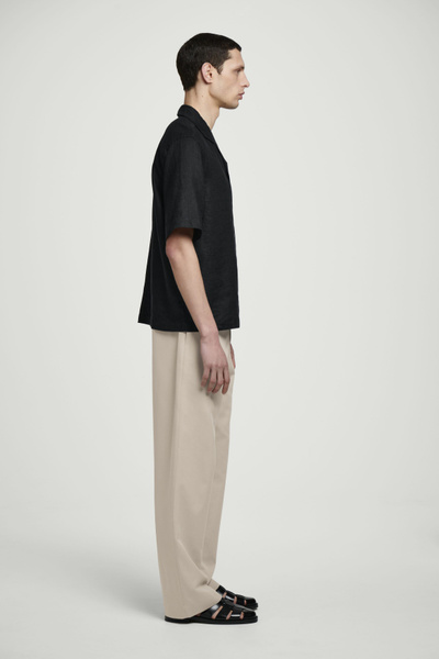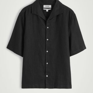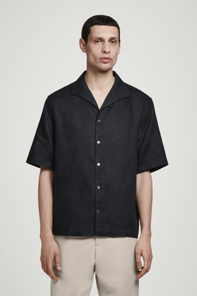 The linen shirt is a pillar of the menswear wardrobe. This short-sleeved piece is designed with an angular camp collar and closes with mother-of-pearl buttons. Style it for summer with shorts or pants in a similar fabric.