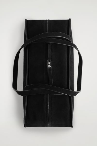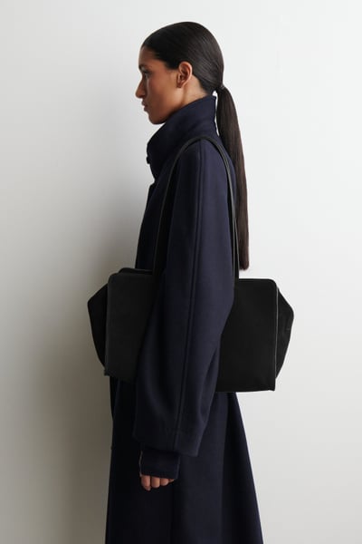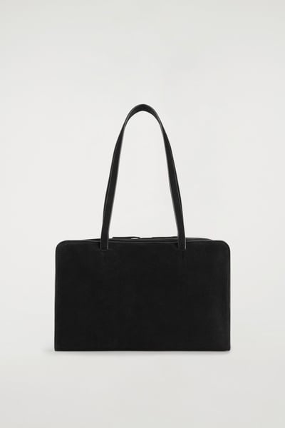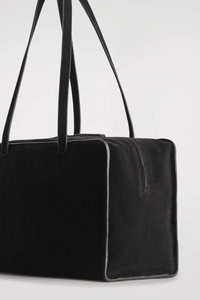 Distinguished by its styling power, the Marais bowling bag marks a new COS icon. It’s crafted from the most supple chrome-free suede in an enduring black tone and features elongated straps and a boxy silhouette that has ’90s undertones. The bonded-leather edges are a premium finishing touch.