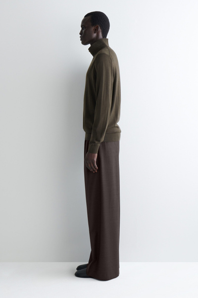 Reimagined wardrobe signatures are a pillar of the COS wardrobe. This modern sweater is designed with subtle buttons that allow it to be styled as a classic collar or buttoned up as a funnel neck. The premium merino wool yarn was selected for its natural warmth and luxuriously soft handle.