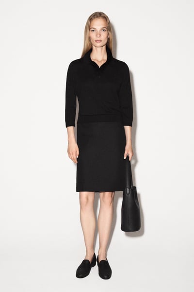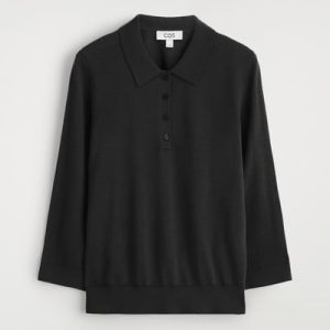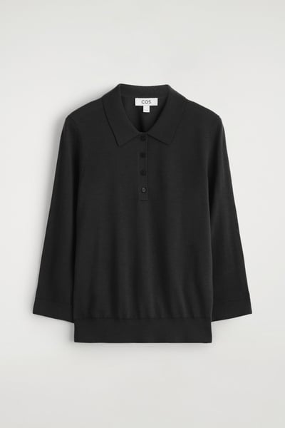 Introducing The Capsule Wardrobe: a seasonal evolution of permanent COS icons. The womenswear team reimagine the classic polo through a modern lens. Crafted from premium merino wool, this piece is designed with a pointed collar, three-quarter-length sleeves and finely ribbed trims.