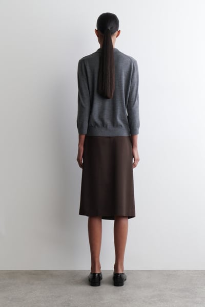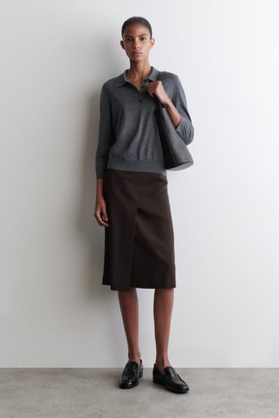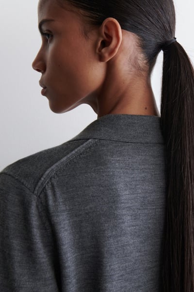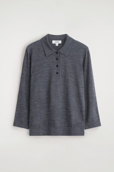 Introducing The Capsule Wardrobe: a seasonal evolution of permanent COS icons. The womenswear team reimagine the classic polo through a modern lens. Crafted from premium merino wool, this piece is designed with a pointed collar, three-quarter-length sleeves and finely ribbed trims.