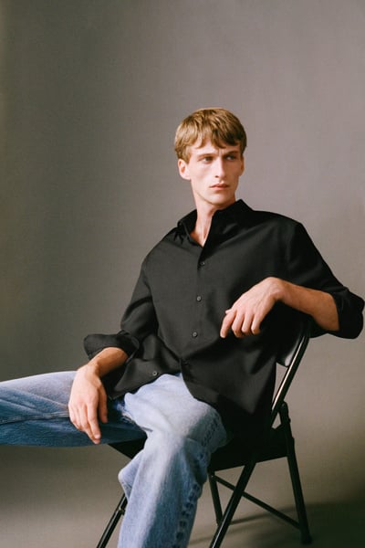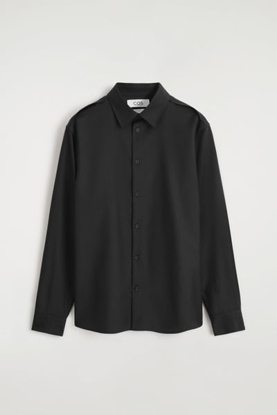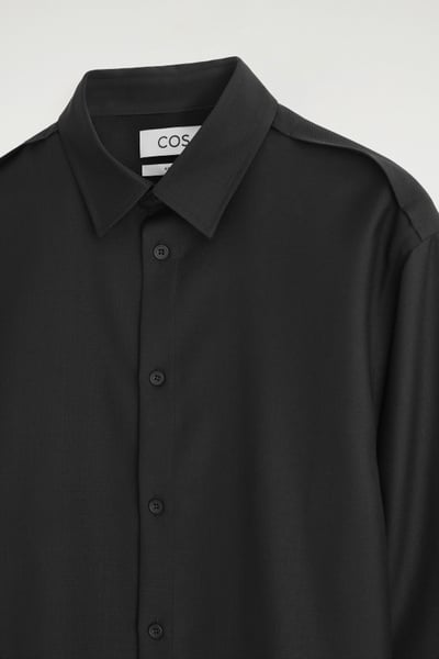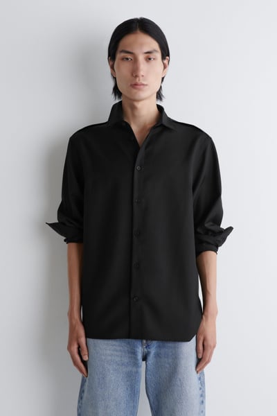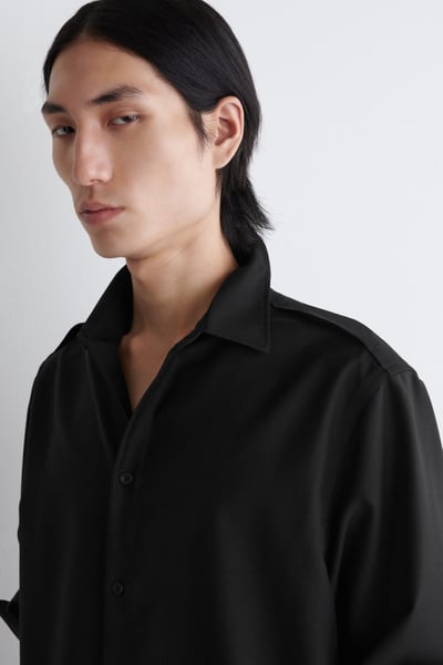 This refined piece reconsiders the codes of classic shirting. It’s tailored in a modern, relaxed shape and woven from premium merino wool that has a softly structured handle. Style it with tonal pants for a monochrome look.