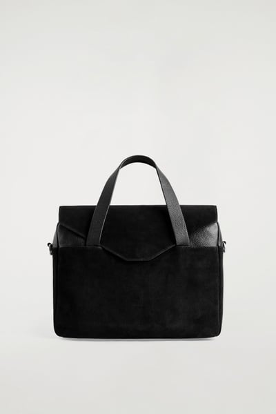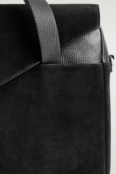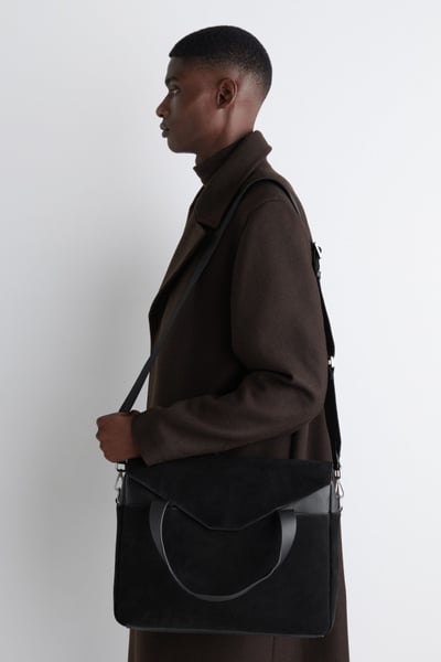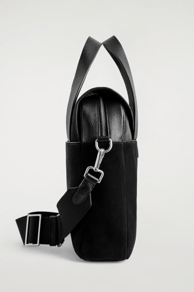 This refined briefcase is crafted from premium suede and trimmed with durable grained leather for subtle nuance. It’s designed with a spacious main compartment that features a number of practical pockets and has a lightly padded sleeve for your laptop. Style it across the body or carry it by the pair of leather grab handles.