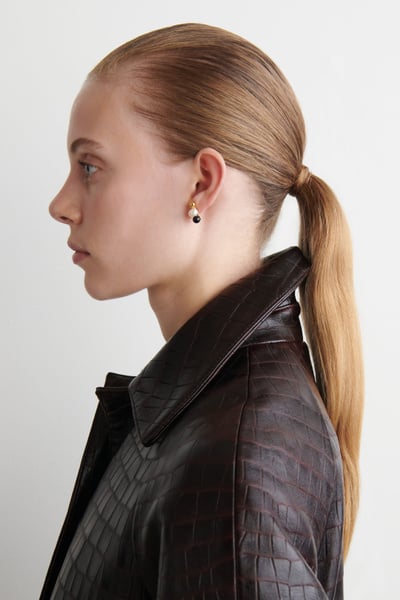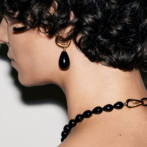 Shell: 50% Freshwater pearl, 40% Recycled brass, 10% Onyx. Excluding trims
