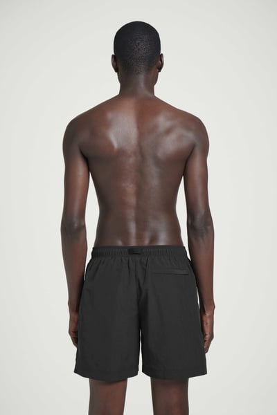 The COS design team has perfected the classic swim shorts. Crafted from recycled nylon, this pair has a comfortable elasticated waistband with a drawstring to adjust the fit and a webbing loop at the back for hanging them out to dry post-swim. Wear them with sandals and a printed shirt on beach days.