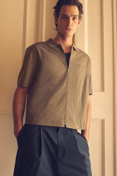 NYLON-PANELED KNITTED SHIRT