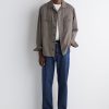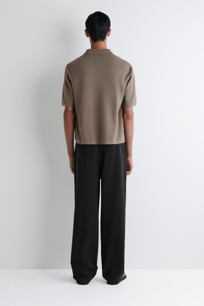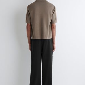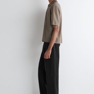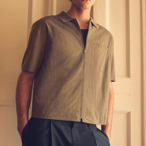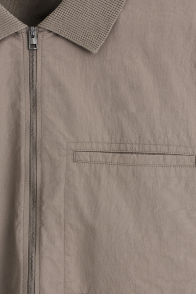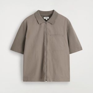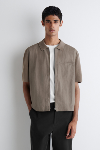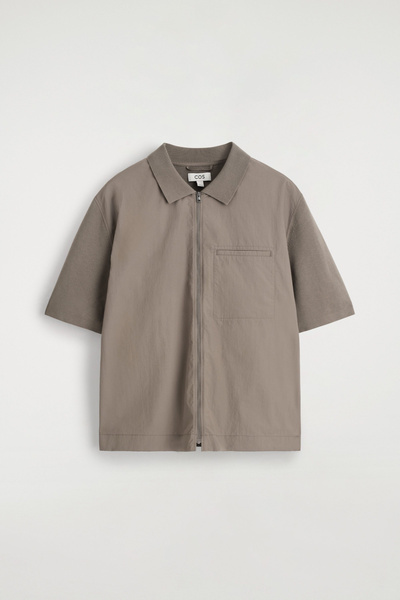 Offered in a versatile stone-gray hue, this short-sleeved shirt has a woven panel at the front that subtly contrasts the tonal knitted back. The silver-tone zipper lends a modern finish.