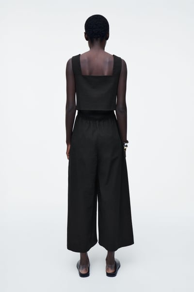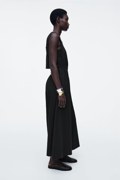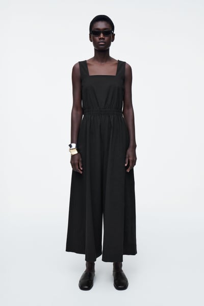 This effortless jumpsuit lends itself to laid-back weekends. Crafted from textured cotton-blend seersucker, it’s cut in a voluminous wide-leg shape and has a gathered waist and open back. Style it over a T-shirt for a layered look.