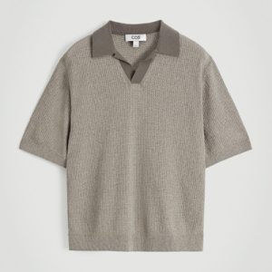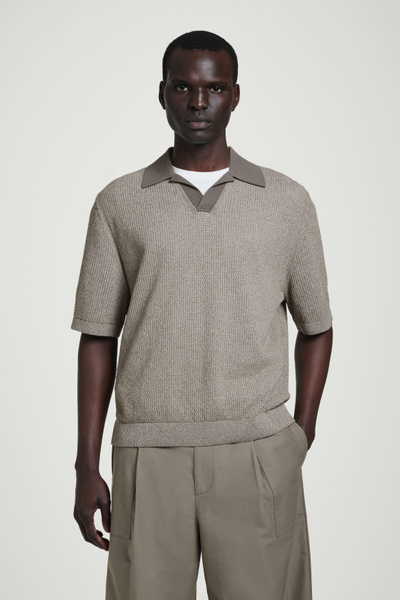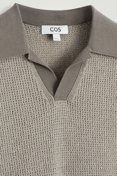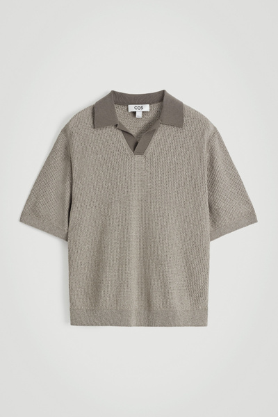 The classic polo shirt is reimagined through relaxed shapes and rich texture. This modern piece is open-knitted from tactile cotton-blend bouclé and has short sleeves and a laid-back open collar.