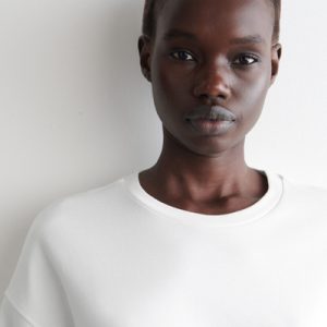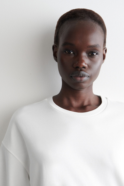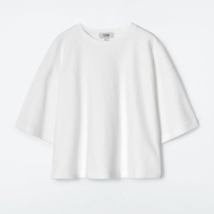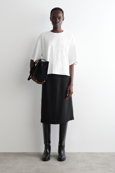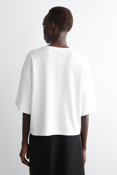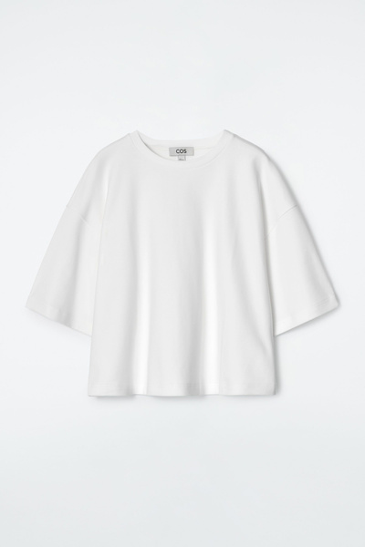 Exaggerating the proportions of the classic crew neck, this T-shirt is made from soft cotton-jersey and has elongated short sleeves that accentuate the boxy, oversized shape. Style it with tailoring and denim.