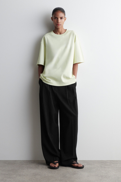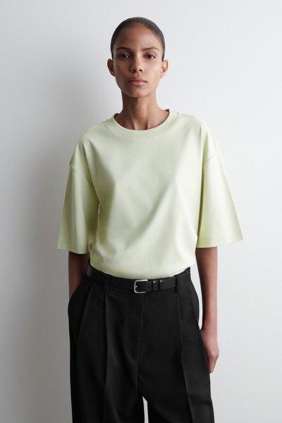 Oversized silhouettes have long been a COS design signature. Effortlessly slouchy, this white T-shirt is crafted from soft organic-cotton jersey and shaped with a ribbed crew neck, extended short sleeves and a wide hem for a laid-back drape. Style it under knitwear for a layered look.
