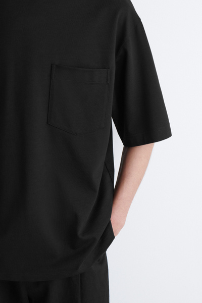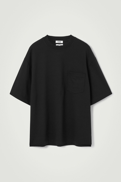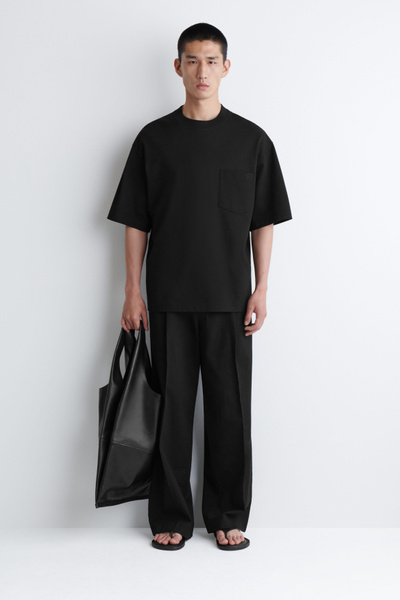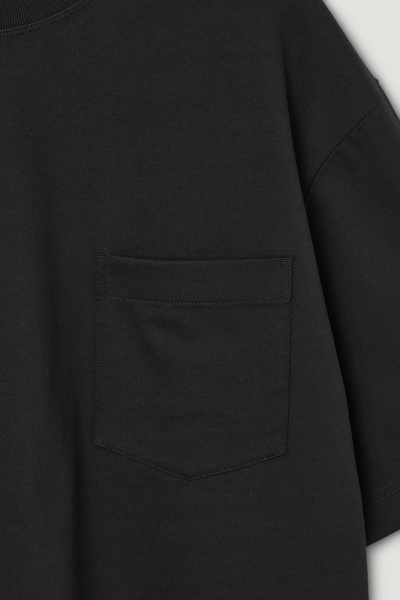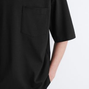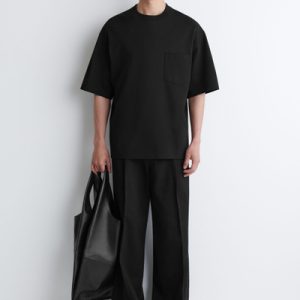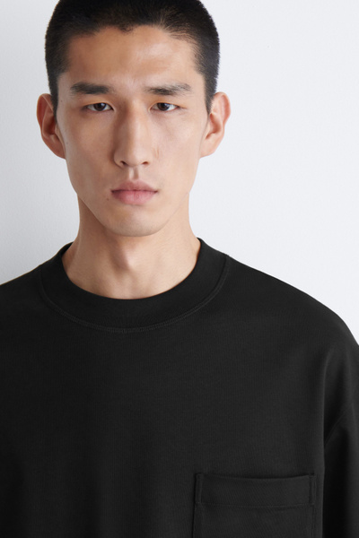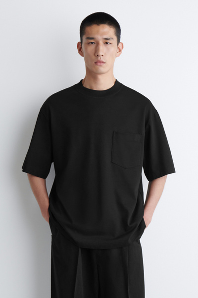 This T-shirt is a few steps up from your classic jersey tee. Weighing in at a substantial 290gsm, it’s made with premium organic cotton that’s hefty, warm and holds the boxy shape in place. It’s designed with a mock neck, dropped shoulders and a casual patch pocket at the chest – perfect for hooking your sunglasses onto.