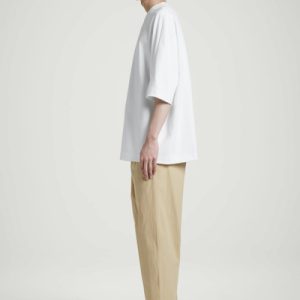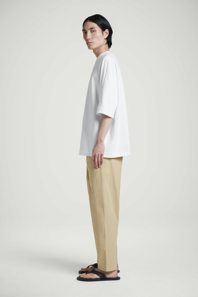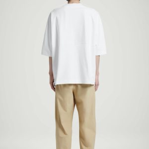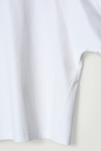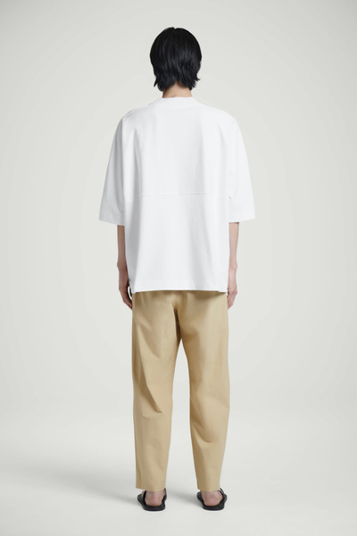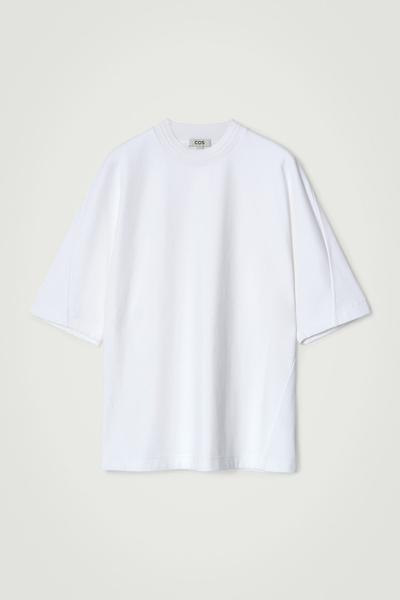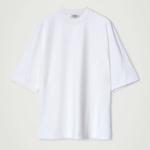 Cut in an oversized, rounded shape, this white T-shirt is made from heavyweight 345gsm cotton-jersey that gives it a sense of structure. It’s designed with a layered mock neck, rounded arms and curved side seams.