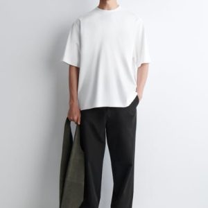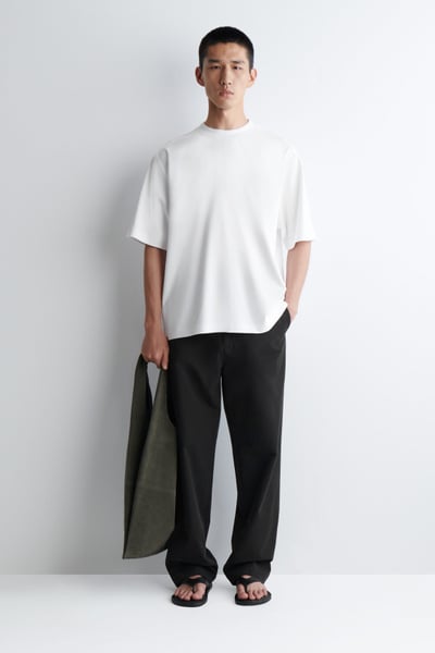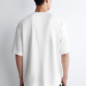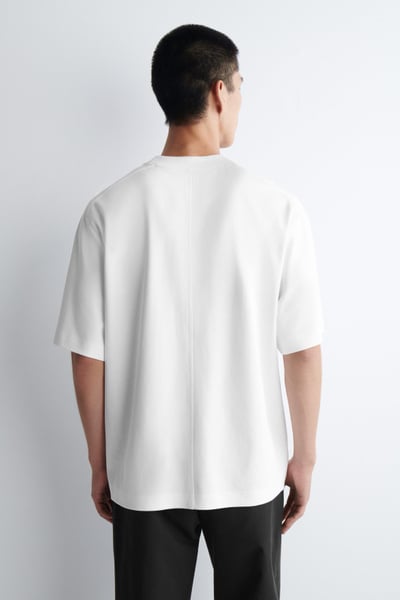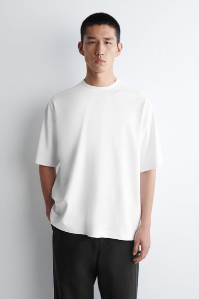 This season, the menswear team reworks the classic tee through a modern lens. Crafted from premium interlock cotton-jersey, this one features a ribbed, double-layered crew neck that looks as though you’re wearing another tee underneath. It’s cut in an oversized shape with short sleeves and dropped shoulders.