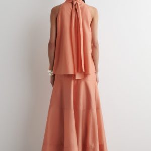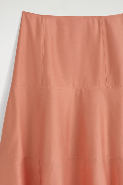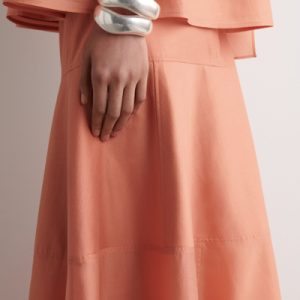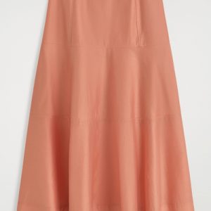 Understated silhouettes and a pastel palette bring a new softness to the Spring Summer 2025 collection. Offered in a warm peach tone, this paneled skirt is crafted from a lightweight TENCEL™ Lyocell blend and has a gently flared shape. Style it with the matching top for a color-saturated look.