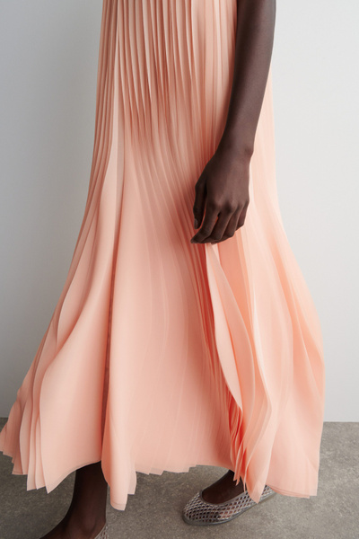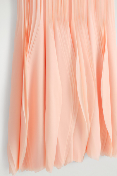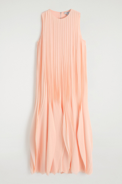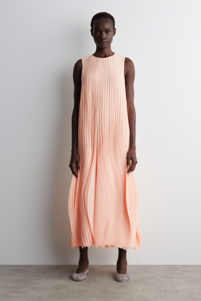 Debuted on the Spring Summer 2025 runway in Athens, this striking midi dress channels a sculptural fluidity. The featherlight fabric is intricately laser-cut and stitched into individual petals that emulate cascading pleats – an embodiment of the COS codes of lasting design and exceptional craftsmanship.