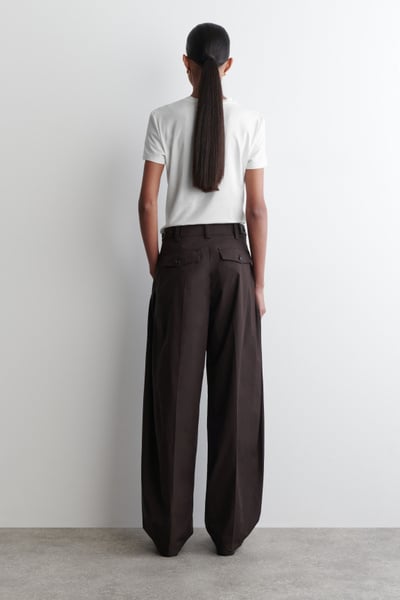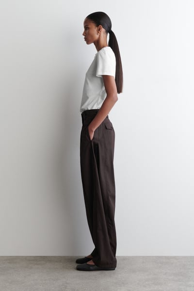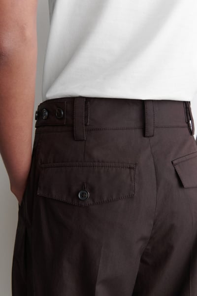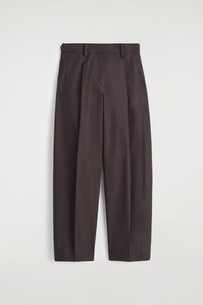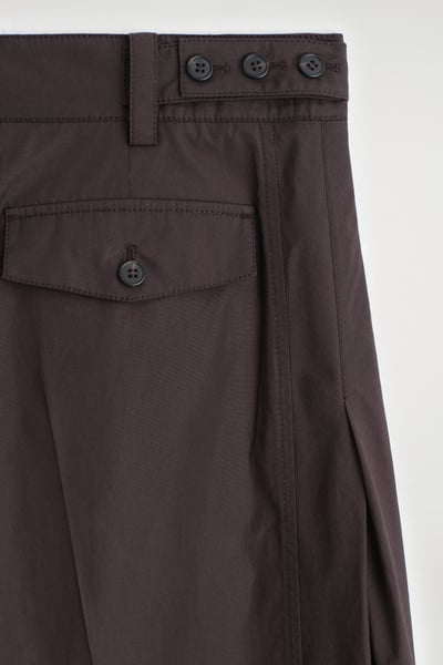 The barrel-leg pants are a signature of the womenswear collection. This pair is made from premium Pima cotton in a sculptural silhouette and designed with pleating detailing and buttoned tabs at the waist. Style them with a T-shirt for a casual sensibility.