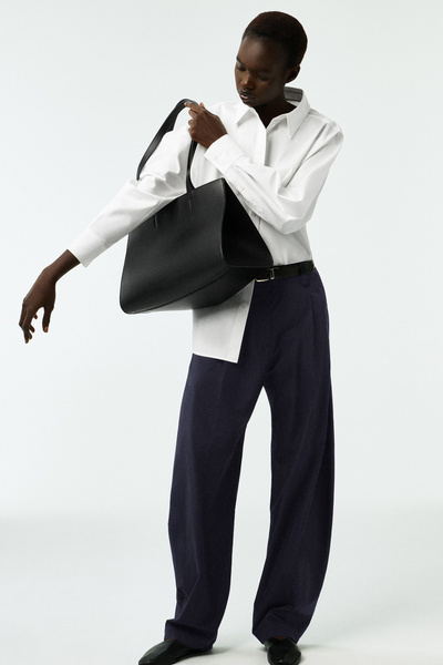 The barrel-leg pants are a signature of the womenswear collection. This pair is made from premium Pima cotton in a sculptural silhouette and designed with pleating detailing and buttoned tabs at the waist. Style them with a T-shirt for a casual sensibility.