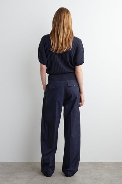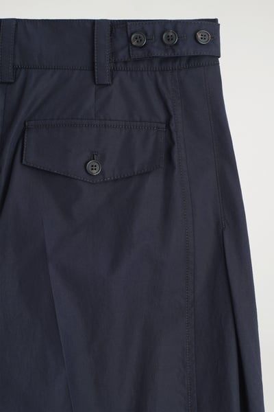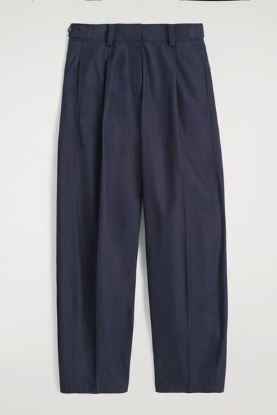 The barrel-leg pants are a signature of the womenswear collection. This pair is made from premium Pima cotton in a sculptural silhouette and designed with pleating detailing and buttoned tabs at the waist. Style them with a T-shirt for a casual sensibility.