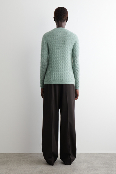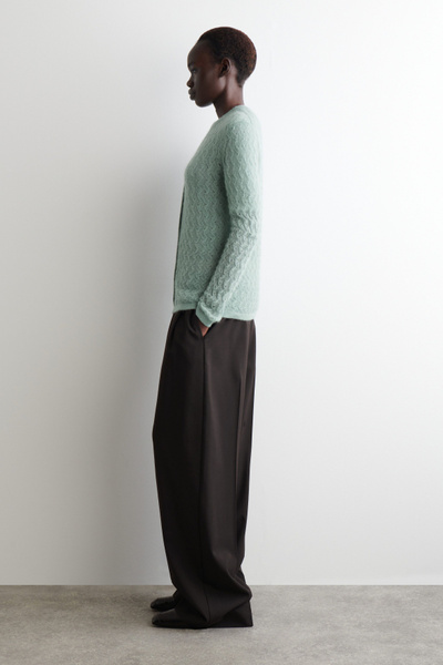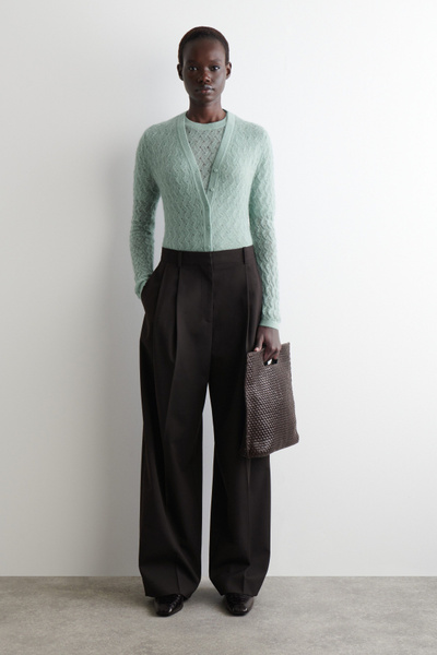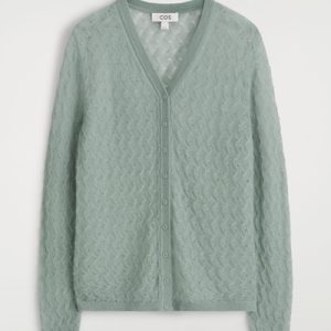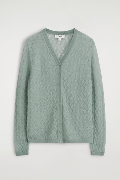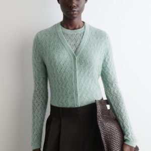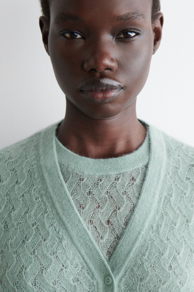 This refined V-neck cardigan will form the foundation of effortlessly layered looks. It’s made from ultra-soft mohair with hints of premium merino and has a delicate pointelle stitch for a subtly sheer finish. The cuffs and hem are ribbed for tactility.
