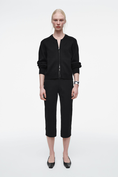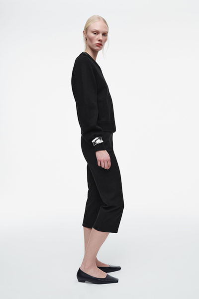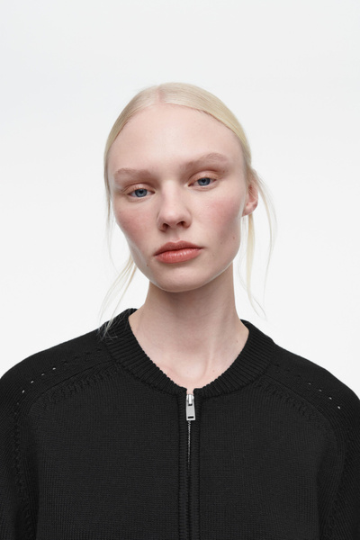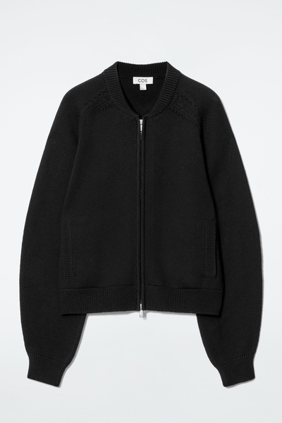 Cozy yet refined, this knitted jacket is the ideal layer as your wardrobe shifts into the transitional months. It’s made from soft RWS wool and cotton and features rounded sleeves and pointelle stitching on the raglan shoulders. Style it over tank tops and tees.