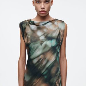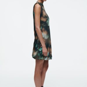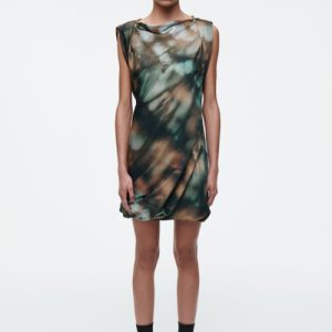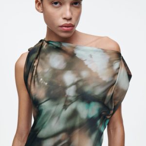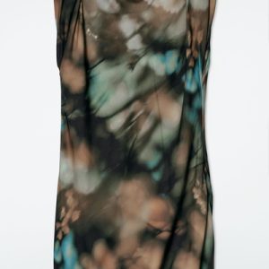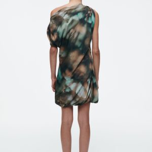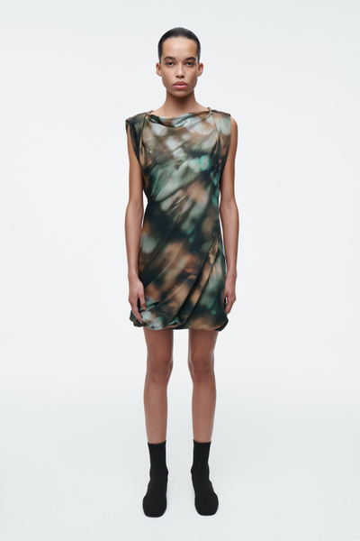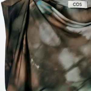 The COS SS25 runway collection builds on the house codes of lasting design and exceptional craftsmanship.Artfully twisted at either shoulder, this sophisticated dress is crafted from a premium mulberry-silk blend that effortlessly drapes around the body. The unique diffused floral graphic was created by pressing buds into a soft-focus lens at our in-house atelier.