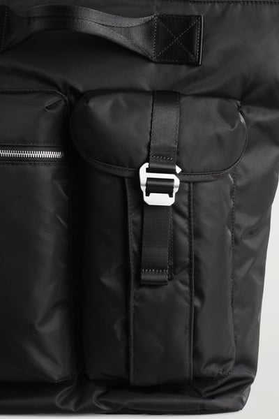 Shell, strap, padding and lining: 100% Recycled polyamide (Recycled nylon). Excluding trims