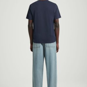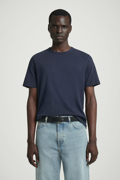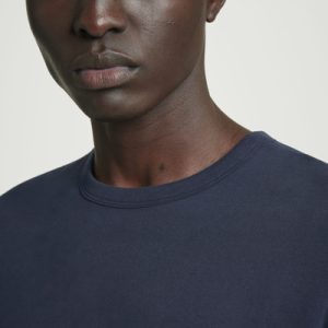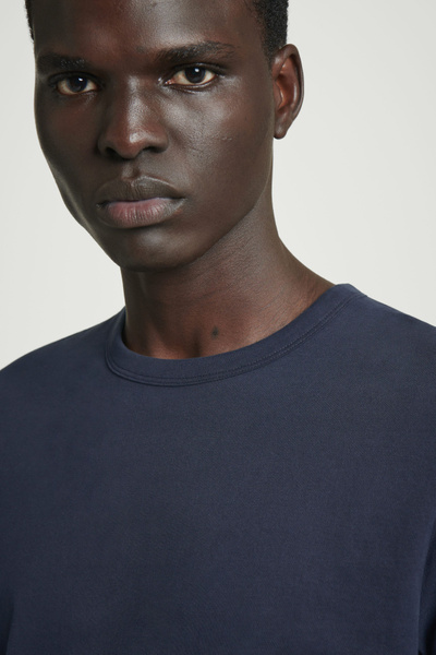 The brushed T-shirt has been a cornerstone of our collection from day one – and for good reason. It’s crafted from 160gsm cotton-jersey that has a luxuriously soft handle and light enough for layering. It comes in navy and has a classic shape that sits neatly with room for movement through the chest and arms.