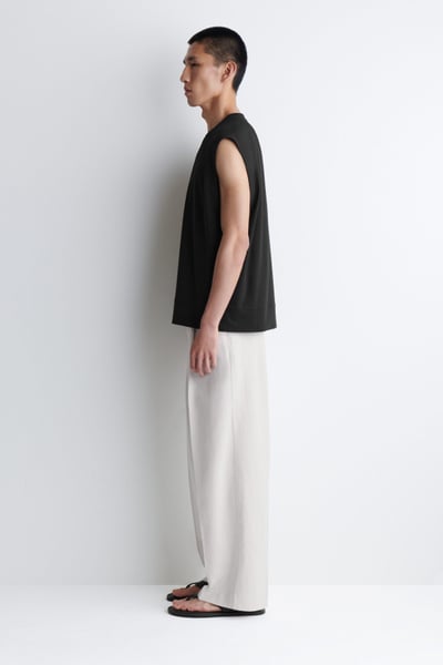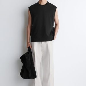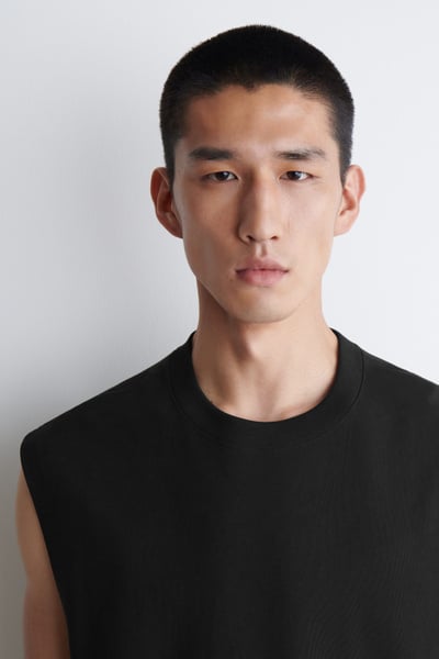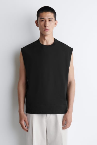 Offered in versatile black, this modern tank top is made from pure cotton crepe that’s light enough for the summer months. It’s cut in a relaxed shape and can be styled alone or layered over t-shirts.