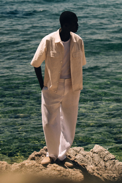 Borrowing from classic workwear, this timeless shirt is designed with short sleeves, a pointed collar and a pair of practical flap pockets at the chest. It’s crafted from a lightweight cotton and TENCEL™ Lyocell blend and has a modern elasticated hem that accentuates the relaxed fit.